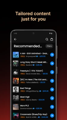 Rasakan pengalaman yang dipersonalisasi sepenuhnya. BeatStars menghadirkan rekomendasi ritme yang cerdas dan daftar putar yang dikurasi khusus, seperti 'Gaya Drake', 'Gaya Lil Baby', atau 'Gaya Juice WRLD', serta banyak lagi yang dirancang untuk memicu inspirasi Anda. Semakin sering Anda berinteraksi dengan ritme favorit, semakin baik BeatStars memahami selera unik Anda sebagai seorang kreator, secara konsisten menyajikan konten baru yang segar dan relevan. Jalin koneksi dan bangun jaringan Anda dengan mengikuti serta berinteraksi langsung melalui pesan dengan artis, produser, penulis lagu, dan insinyur favorit Anda, berbagi gagasan, dan terus mengikuti perkembangan rilis terbaru dari komunitas musik global.