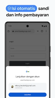 Hidupkan pengalaman menjelajah tanpa batas di mana pun Anda berada. Dengan Chrome, semua data penting Anda—mulai dari bookmark favorit, tab yang terbuka, hingga sandi yang tersimpan—dapat diakses secara instan dan aman di ponsel, tablet, atau komputer Anda melalui fitur sinkronisasi cerdas. Atur navigasi Anda dengan mudah menggunakan Grup Tab untuk menjaga kerapian, dan hemat waktu berharga dengan pengisian otomatis untuk detail pembayaran, alamat, serta sandi yang tersimpan, menjadikan setiap interaksi lebih lancar dan efisien.