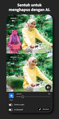Selami dunia pengeditan visual yang luar biasa dengan sederet fitur canggih yang ditawarkan Lightroom. Editor foto kami memungkinkan Anda memperbaiki latar belakang, mencerahkan detail, atau menghilangkan noda secara presisi. Rasakan kekuatan AI Generative Remove untuk menghapus objek yang tidak diinginkan dengan mulus atau menambahkan sentuhan unik tanpa memerlukan keahlian khusus. Tidak hanya foto, alat pengeditan video yang intuitif juga tersedia, memungkinkan Anda menerapkan pengaturan cahaya, warna, dan preset favorit ke dalam klip bergerak Anda, menciptakan narasi visual yang kohesif dan memukau.