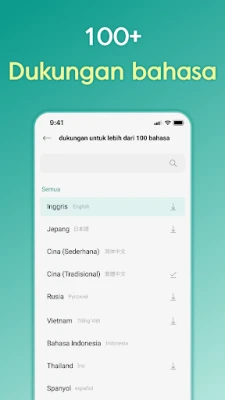 Bayangkan terjemahan secepat kilat, bahkan dalam satu detik! Terjemahan Bersuara dirancang untuk kebutuhan mendesak Anda. Dengan pengenalan suara canggih, kalimat Anda diubah seketika, dan riwayat percakapan tersimpan, memastikan kelancaran komunikasi meski koneksi internet kurang stabil. Kuasai lebih dari 100 bahasa dunia – termasuk Inggris, Mandarin, Vietnam, Jepang, Rusia, Spanyol, Prancis, Indonesia, hingga Arab – semuanya dalam genggaman Anda. Tak perlu khawatir jika koneksi internet terputus; fitur terjemahan offline kami memastikan Anda tetap dapat berkomunikasi tanpa hambatan di mana pun Anda berada.
