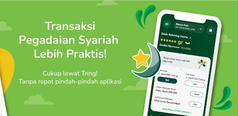 Pengalaman Anda di Tring! disempurnakan dengan beragam fitur unggulan. Pantau cicilan Anda dengan Kartu Angsuran dan hindari keterlambatan pembayaran berkat notifikasi otomatis dari fitur Card Jatuh Tempo. Selalu update dengan kondisi pasar melalui Indikator Harga Emas yang informatif. Keamanan transaksi Anda adalah prioritas kami, dengan sistem login biometrik (sidik jari atau Face ID) untuk akses yang mudah dan terlindungi. Aplikasi ini juga dilengkapi Multi Payment untuk berbagai tagihan, pencarian outlet terdekat, riwayat transaksi, hingga artikel edukatif seputar investasi. Nikmati pula kemudahan pendaftaran dan aktivasi akun yang kini lebih cepat, pembukaan rekening otomatis, dan pengelolaan profil Konvensional serta Syariah dalam satu aplikasi yang praktis. Tingkatkan akun Anda ke Premium dengan mudah untuk akses penuh ke seluruh layanan Pegadaian.